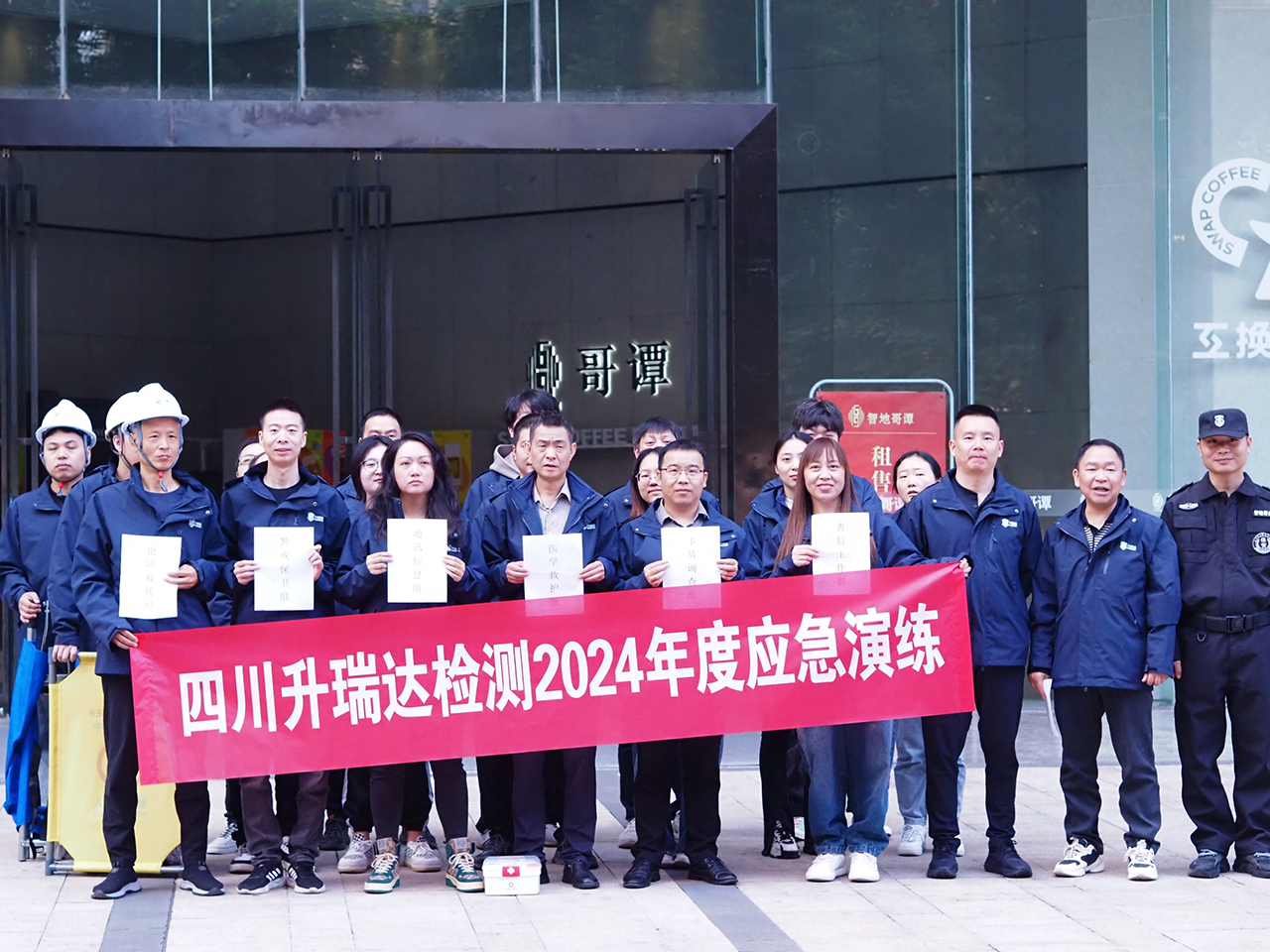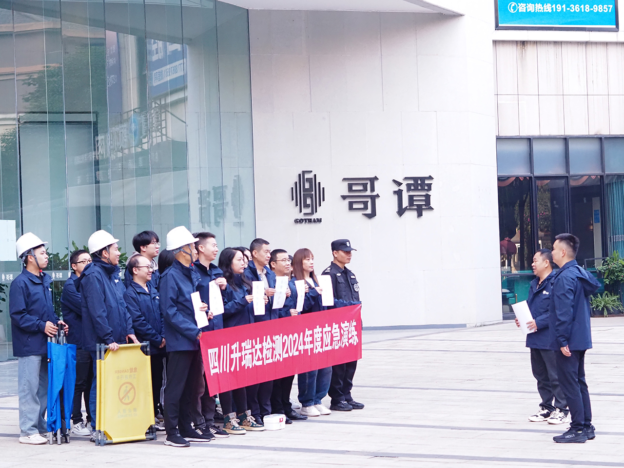 2024 年 11 月 2 日,升瑞达检测在成都市高新区益州大道 188 号成功开展应急演练,模拟电梯底坑坠落事故。此次演练中,各部门协同作战,成立了多个应急小组,现场指挥部由总经理赖宇任指挥长、副经理王宏任副指挥长,统一指挥救援行动。