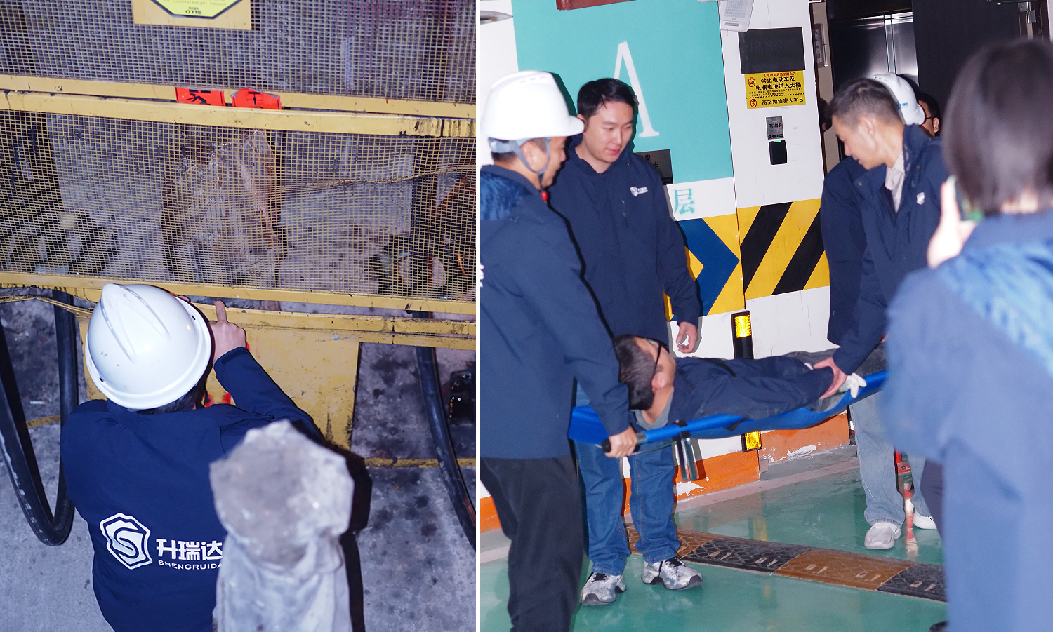 10 时 10 分,检测人员到达电梯底层指定位置触发报警,工作负责人确认后启动救援程序,各小组迅速就位,并通知物业协同。指挥长接报后,公司特种设备事故应急救援领导小组立即启动预案,指挥部成员到位并通知物业配合,相关领导和专家也迅速赶赴现场。